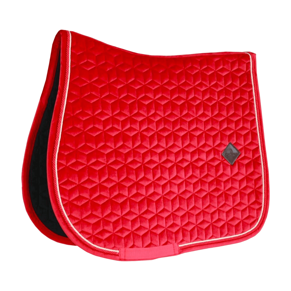 Il sottosella in velluto è sagomato per il salto e fornisce un'eccellente ammortizzazione tra la schiena del cavallo e la sella, proteggendo allo stesso tempo dall'attrito.
