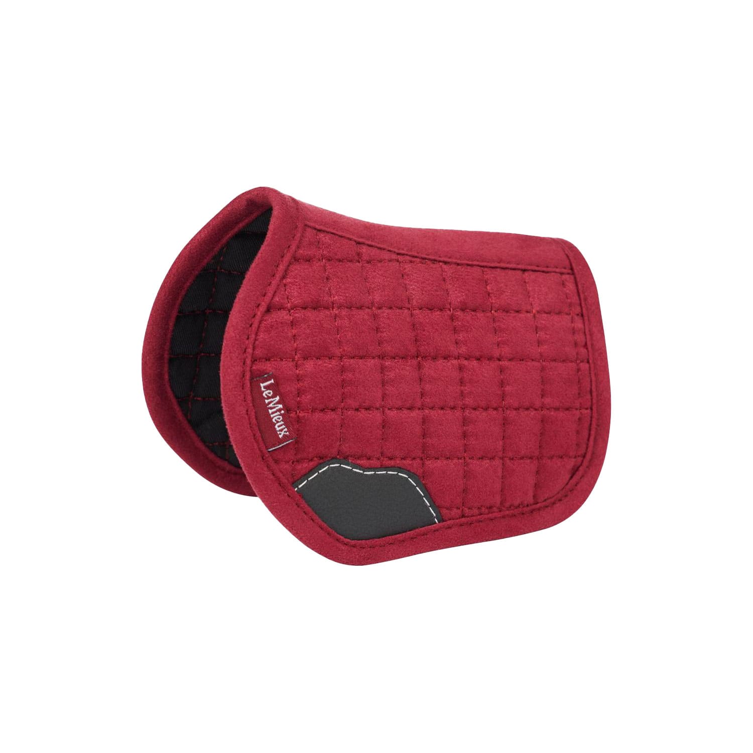 Proprio come quello vero, questo piccolo sottosella ha un'area di protezione della cinghia in similpelle e il marchio LeMieux.