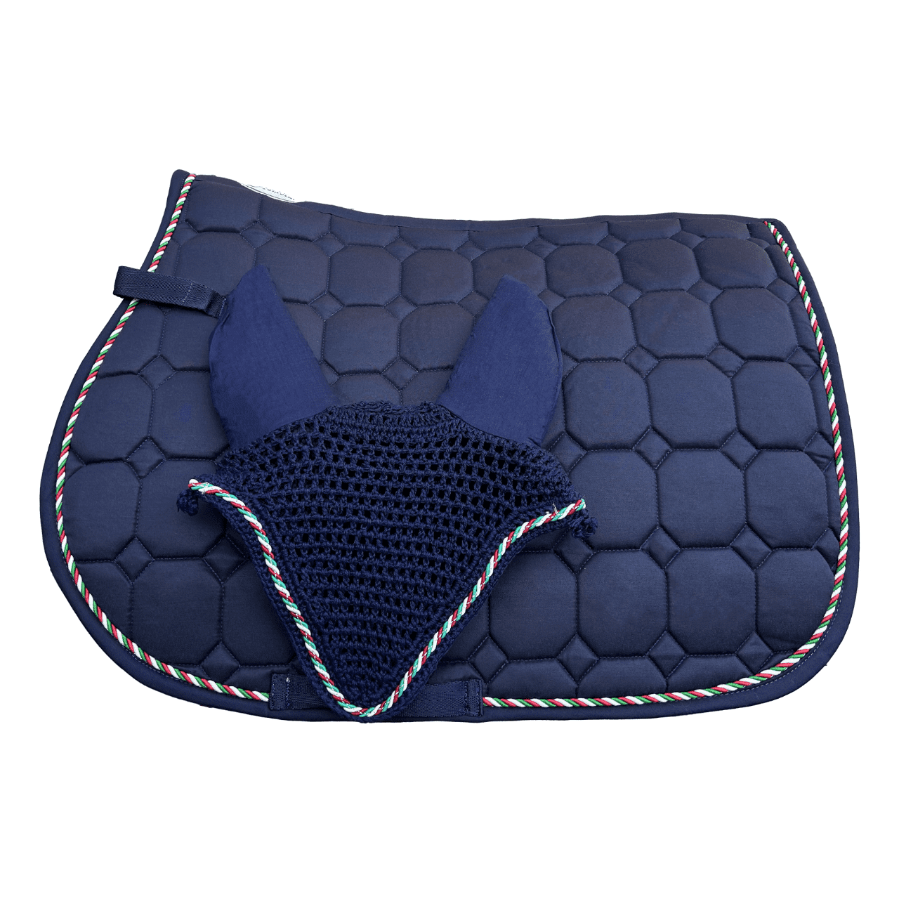 La cuffietta è realizzata a mano e permette al cavallo di rimanere concentrato durante il lavoro senza essere disturbato dagli insetti.