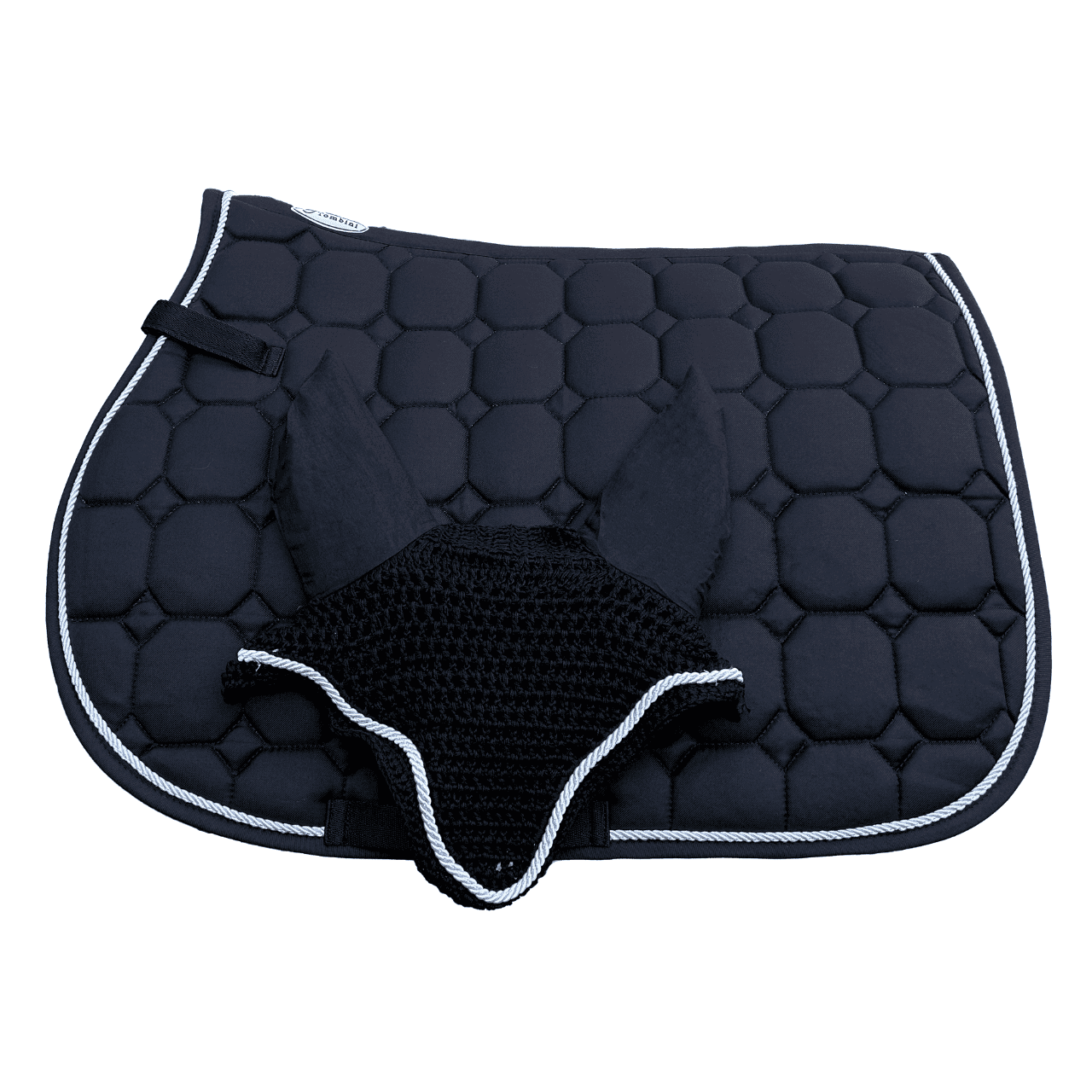 La cuffietta è realizzata a mano e permette al cavallo di rimanere concentrato durante il lavoro senza essere disturbato dagli insetti.