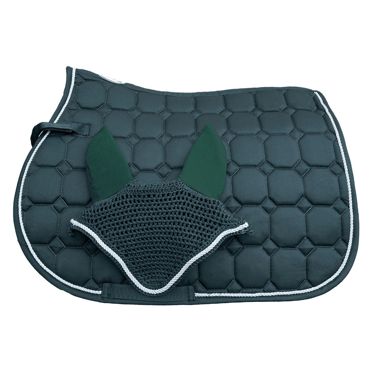 La cuffietta è realizzata a mano e permette al cavallo di rimanere concentrato durante il lavoro senza essere disturbato dagli insetti.