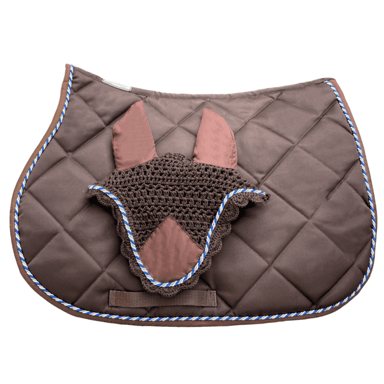 La cuffietta è realizzata a mano e permette al cavallo di rimanere concentrato durante il lavoro senza essere disturbato dagli insetti.