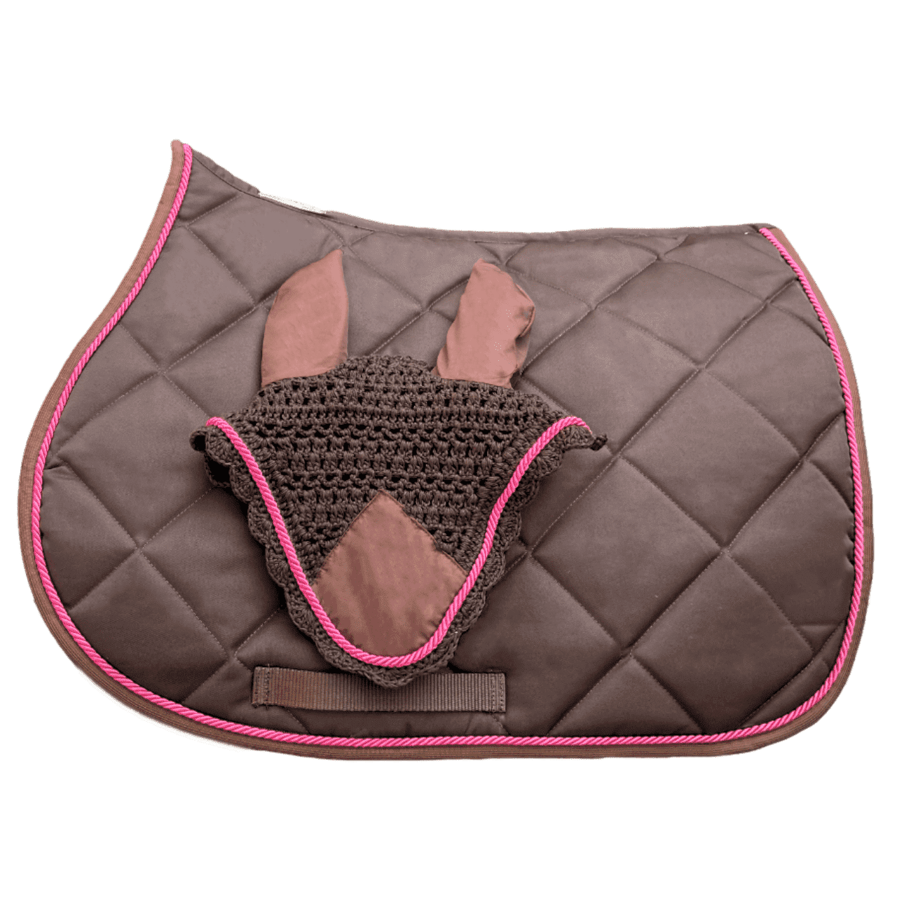 La cuffietta è realizzata a mano e permette al cavallo di rimanere concentrato durante il lavoro senza essere disturbato dagli insetti.