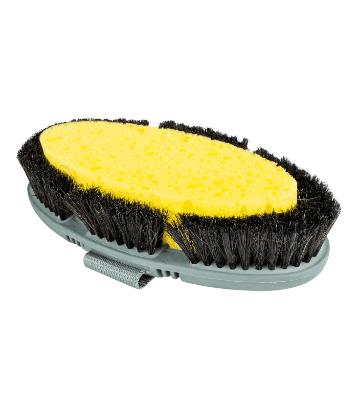 Spazzola ideale per lavare il cavallo grazie alla combinazione di setole di crine naturale e spugna assorbente.
