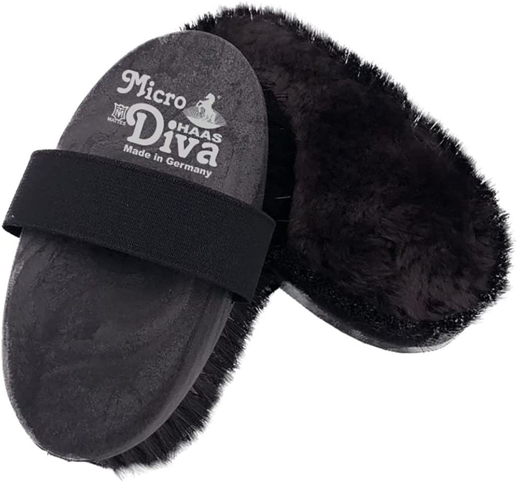 Morbida spazzola con pelliccia di agnello circondata da crine di cavallo nero per un pelo perfettamente curato e lucido.