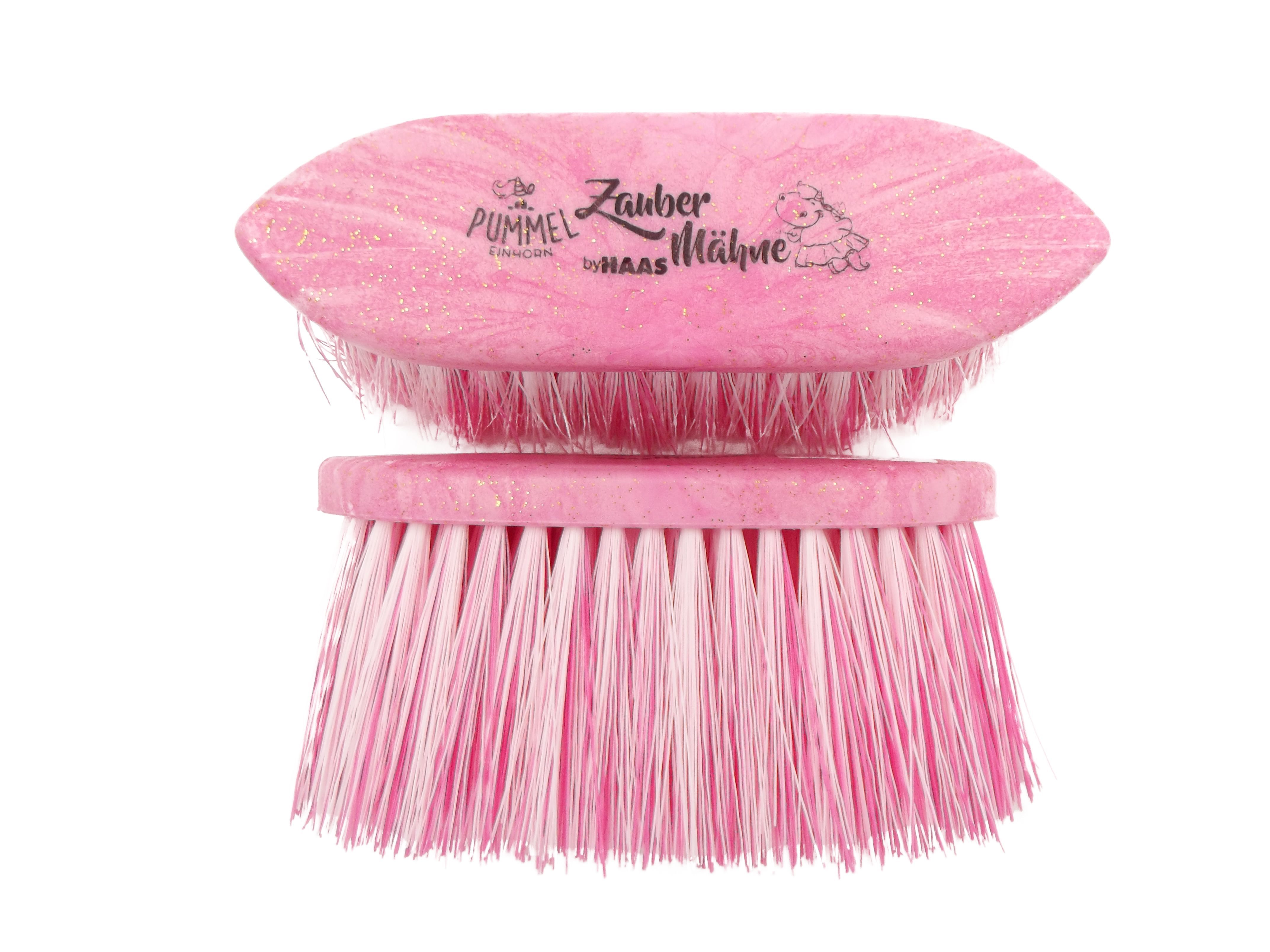 Spazzola per cavalli super efficace a rimuovere la polvere dal cavallo grazie alle sue setole sintetiche lunghe 8 cm. Colore rosa.