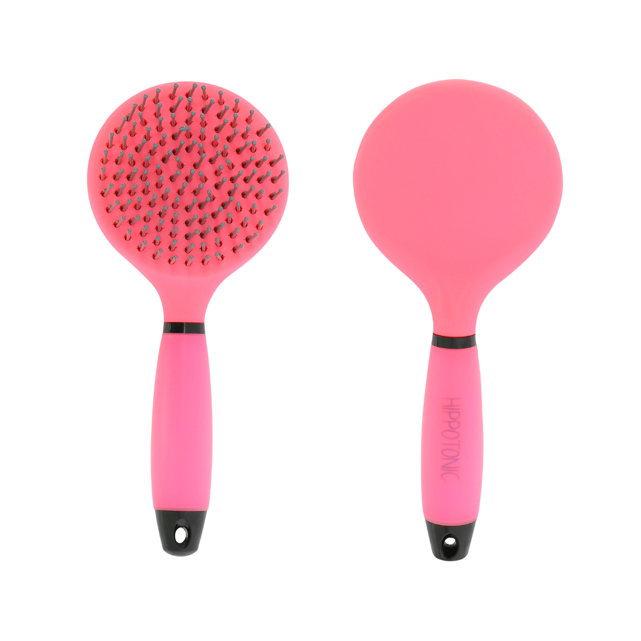 Spazzola per pettinare la coda e la criniera del cavallo in maniera efficace con con setole in nylon disposte in cerchio e manico in gel.