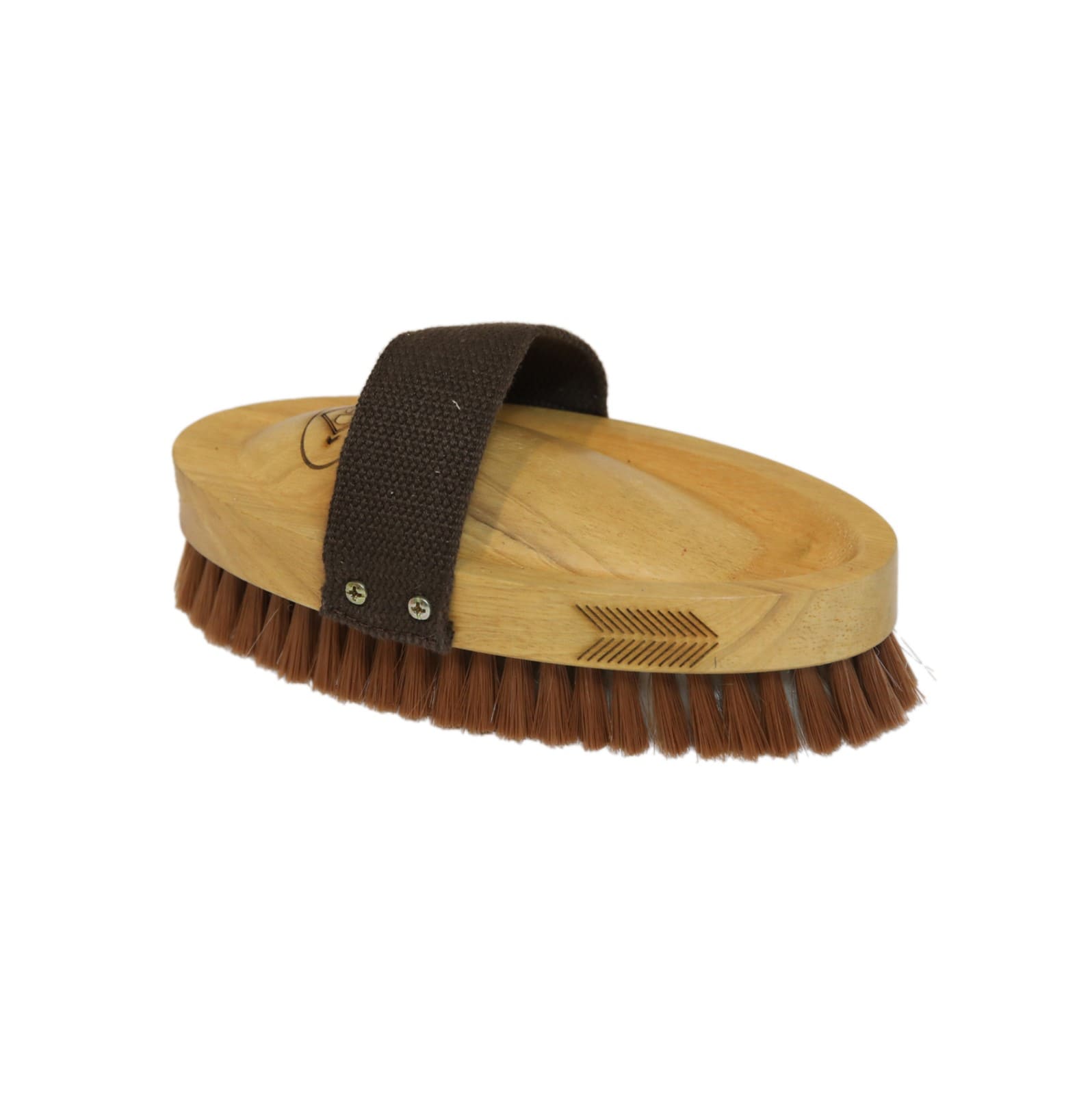 Spazzola ovale a forma anatomica di Kentucky con dorso in legno, cinturino in cotone e setole corte e morbide.