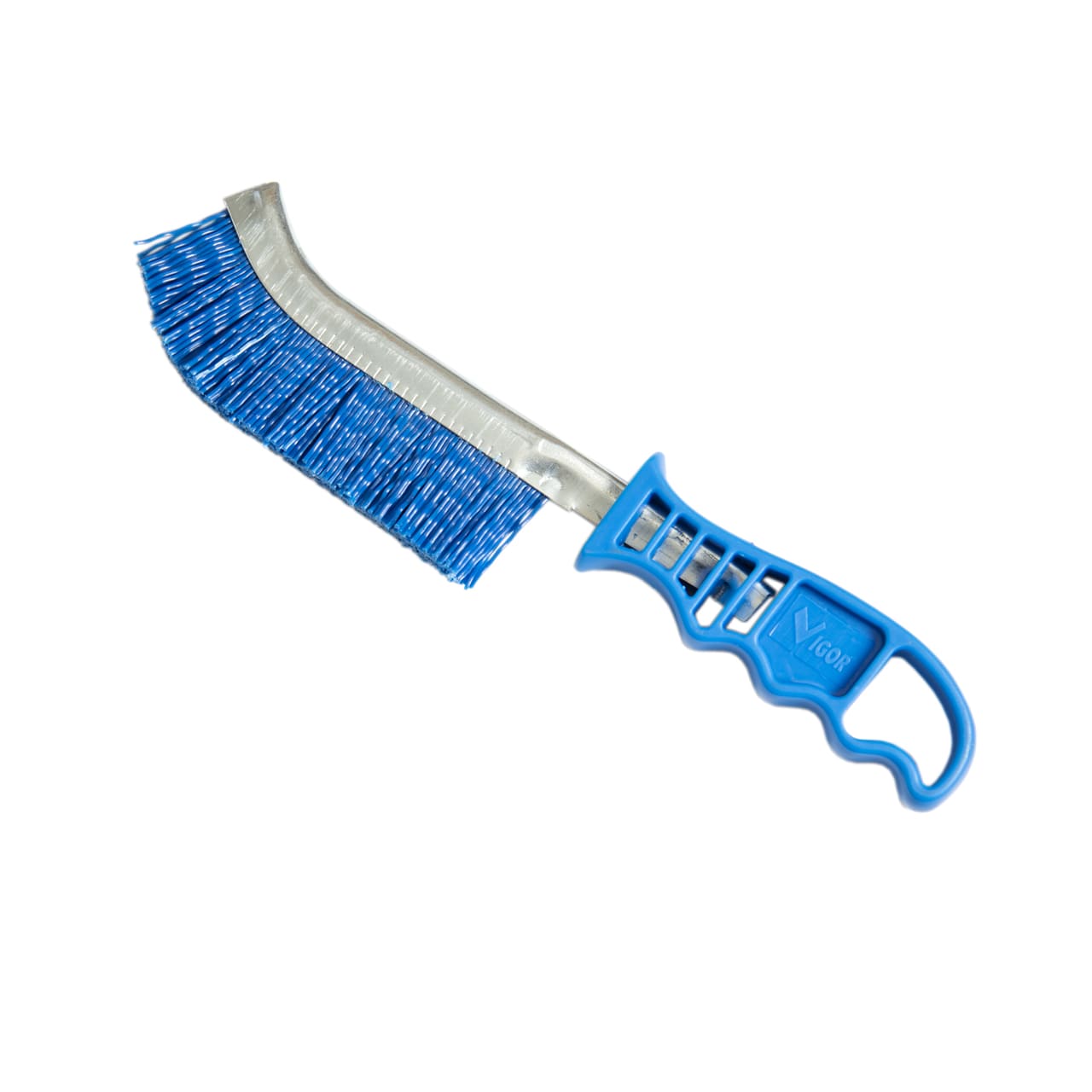 Spazzola per rimuovere lo sporco dagli zoccoli con setole a filo ondulato in nylon rigido azzurro.