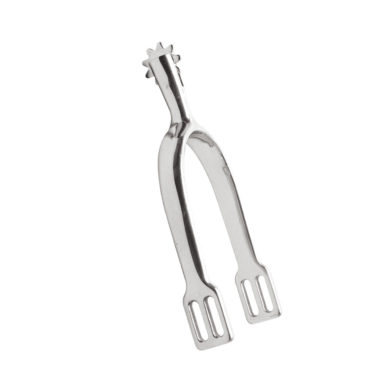 Sperone da dressage uomo in acciaio inox con gambo da 35 mm e rotella.