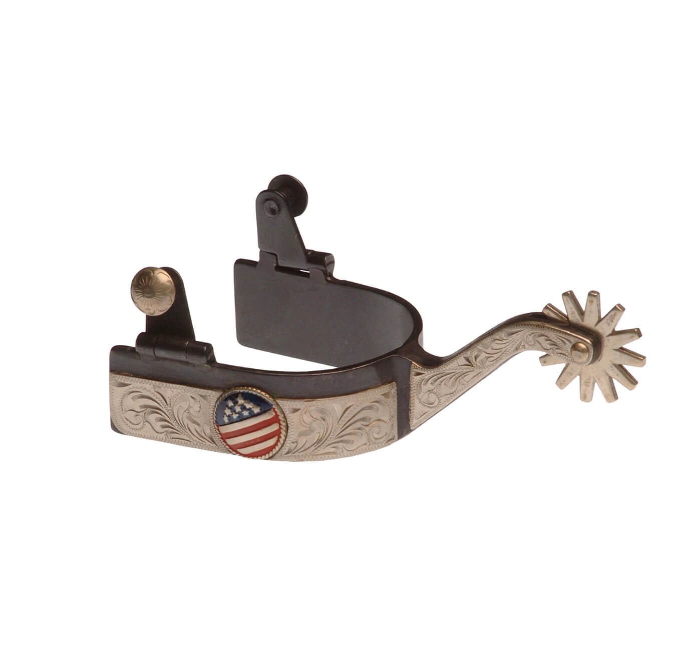 Speroni western in ferro brunito con decorazione bandiera USA.