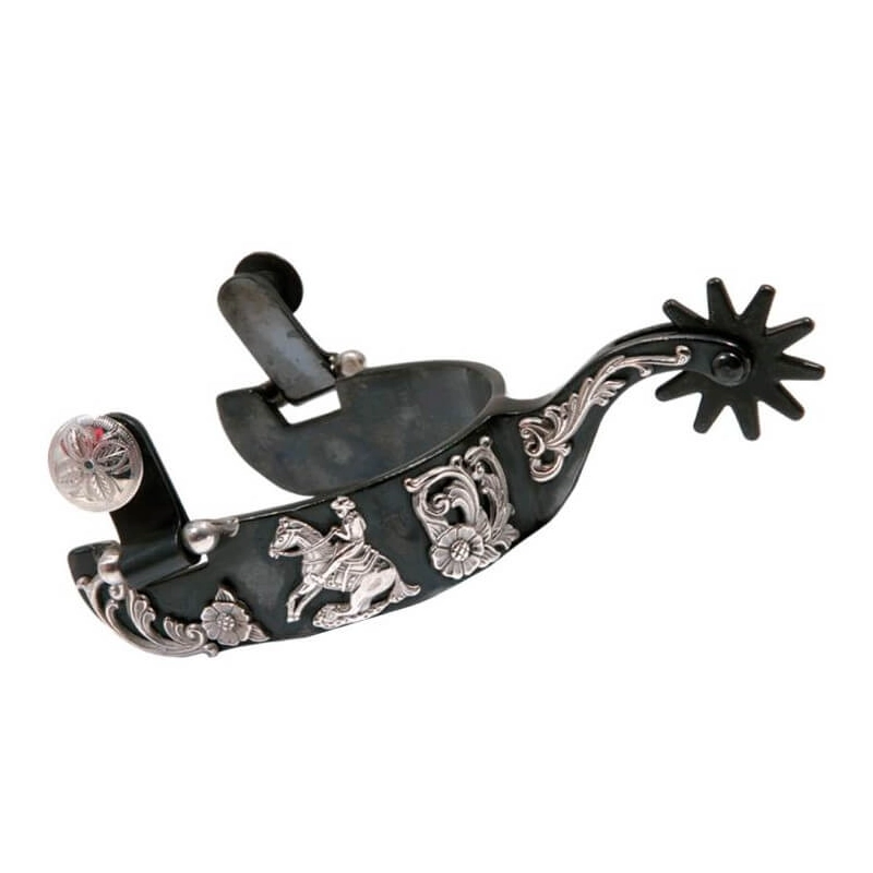 Speroni western da reining in metallo nero satinato con decorazioni floreali in German Silver.