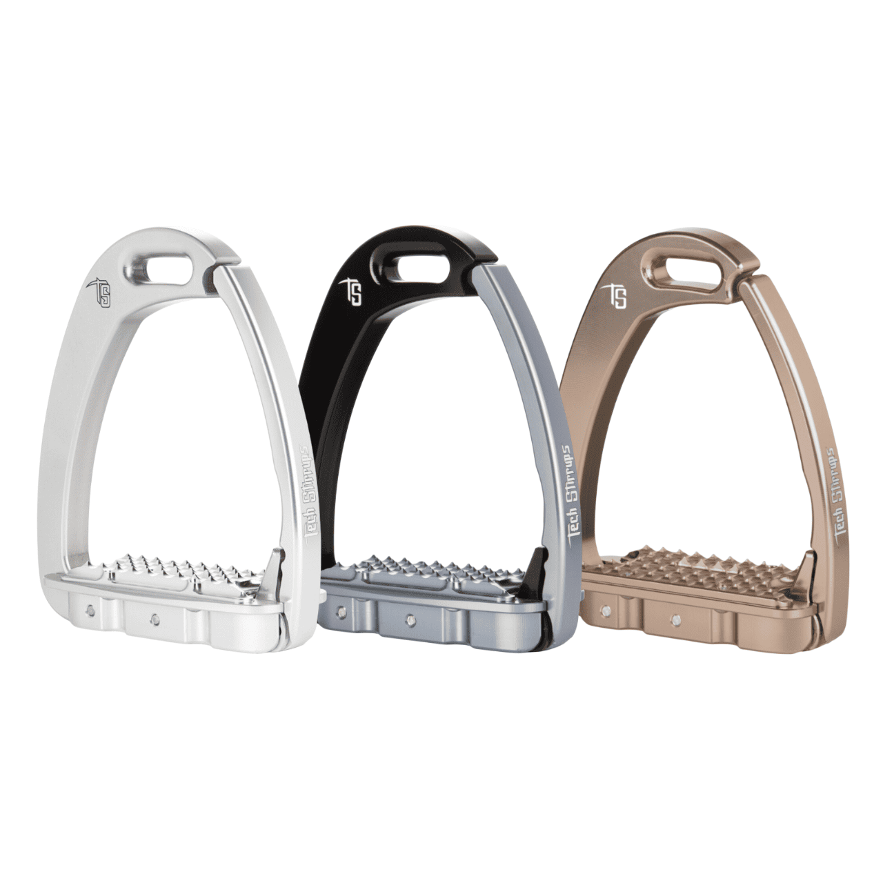 Staffe di sicurezza Tech Stirrups Venice Sloped Evo ideali per il salto ostacoli e cross-country per giovani cavalieri.