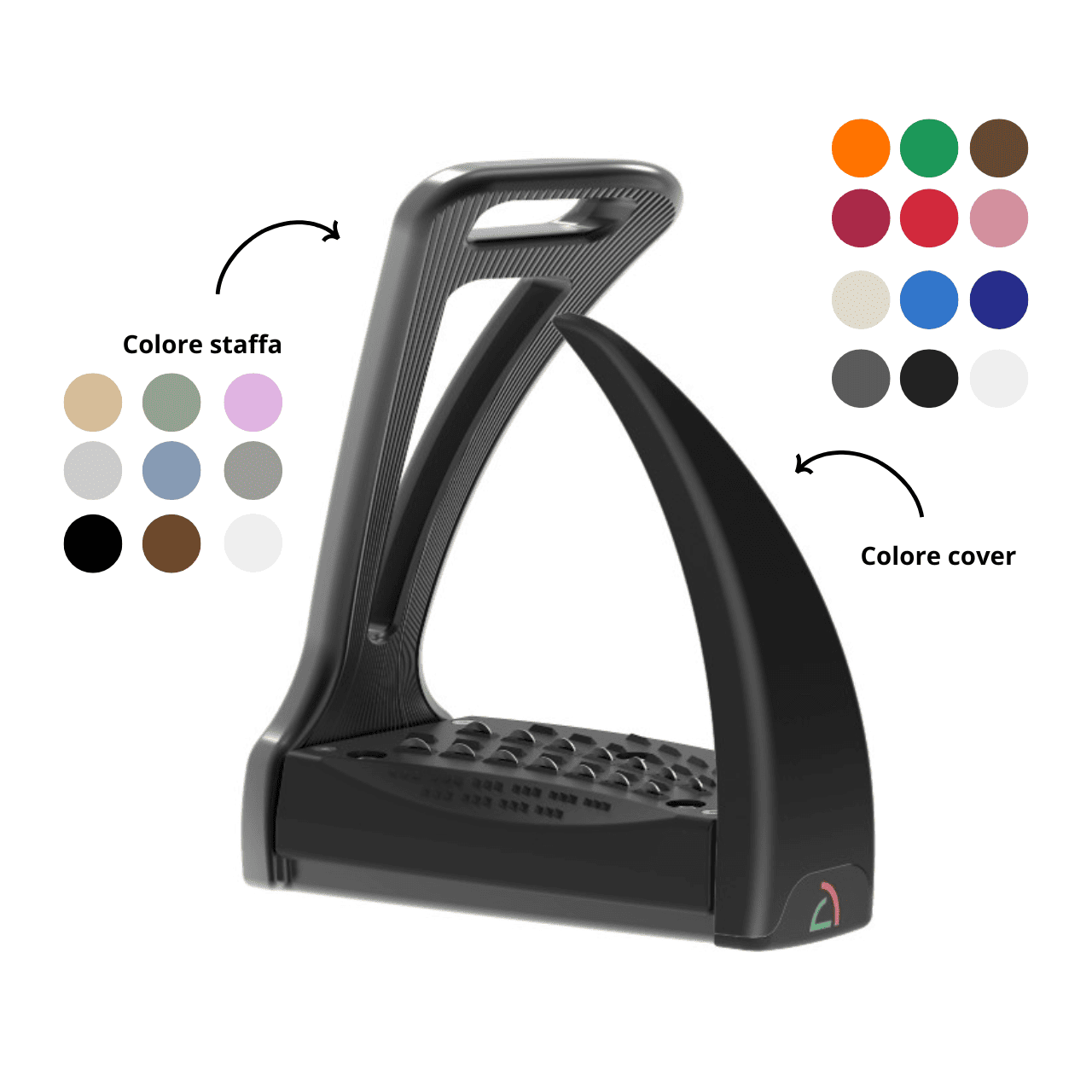 L’arco si apre in ogni direzione e, in caso di caduta, permette al cavaliere di liberare completamente il piede evitando di rimanere staffato.