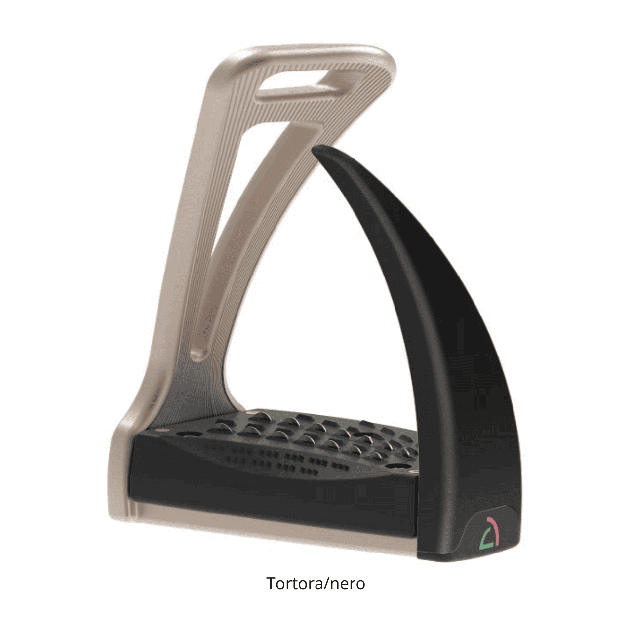 L’arco si apre in ogni direzione e, in caso di caduta, permette al cavaliere di liberare completamente il piede evitando di rimanere staffato.