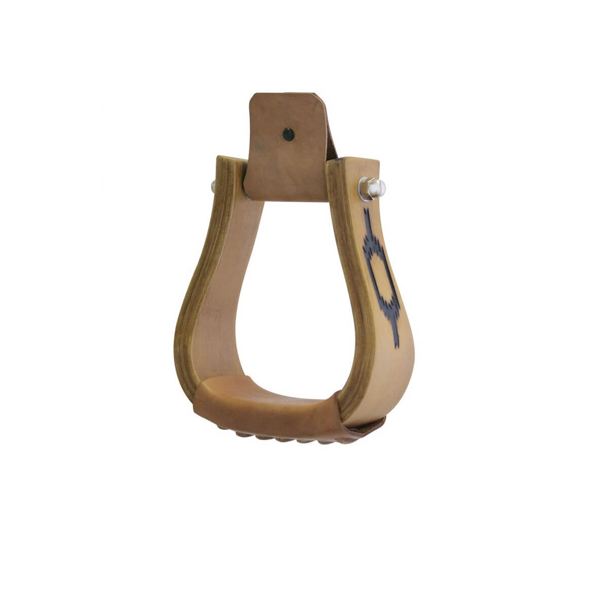 Staffe western in legno lamellare con disegni navajo e pedana in cuoio.