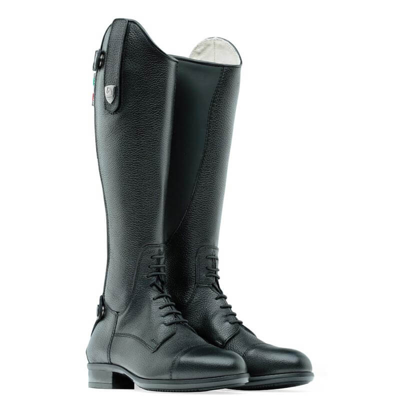 Stivali da equitazione da bambino Tattini modello Breton Young in pelle bottalata di vitello con lacci anteriori e cerniera posteriore YKK e inserto closetex, SH, come nel modello normale lunghezza tibia.