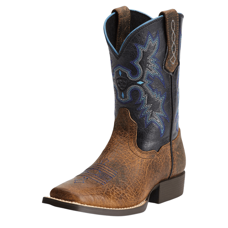 Stivali western da ragazzo modello Tombstone con suola in gomma, punta quadrata e ricami decorativi a contrasto sul gambale.