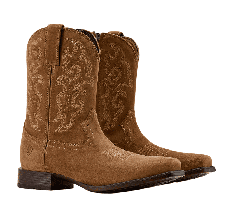 Stivali western uomo modello Bodie con punta quadrata realizzati in pelle di pieno fiore di prima qualità e pelle scamosciata di prima qualità.