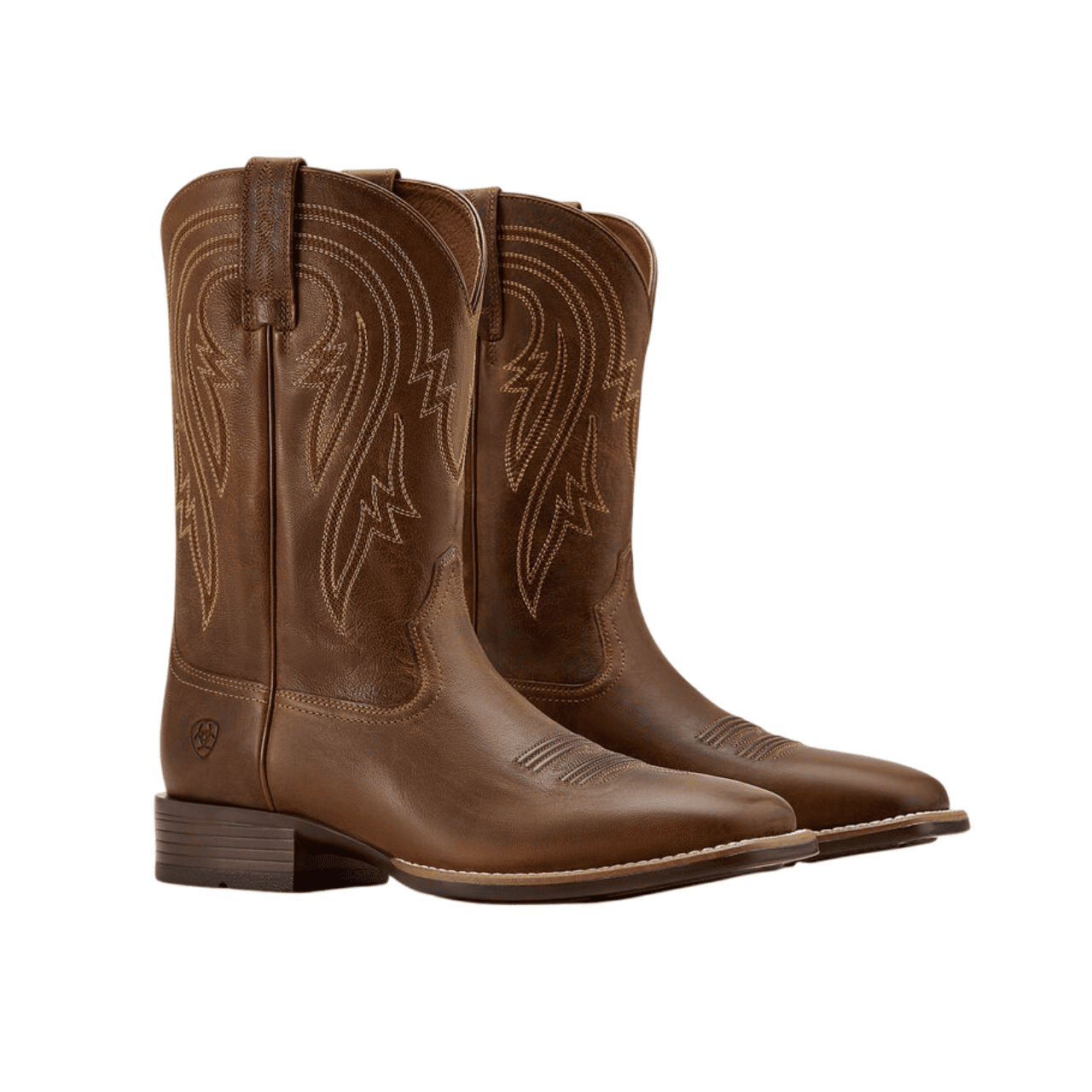 Stivali western uomo modello Plano con soletta anatomicamente progettata, punta larga e quadrata e ricami decorativi a contrasto sul gambale.