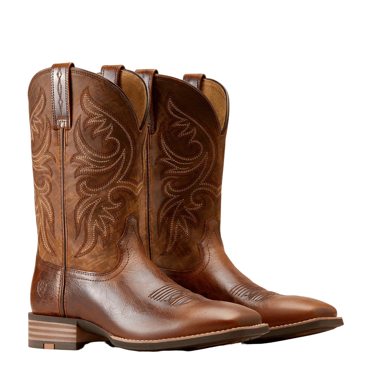 Stivali western da uomo modello Slingshot con suola in gomma, punta squadrata e piede e tomaia in pelle pieno fiore.