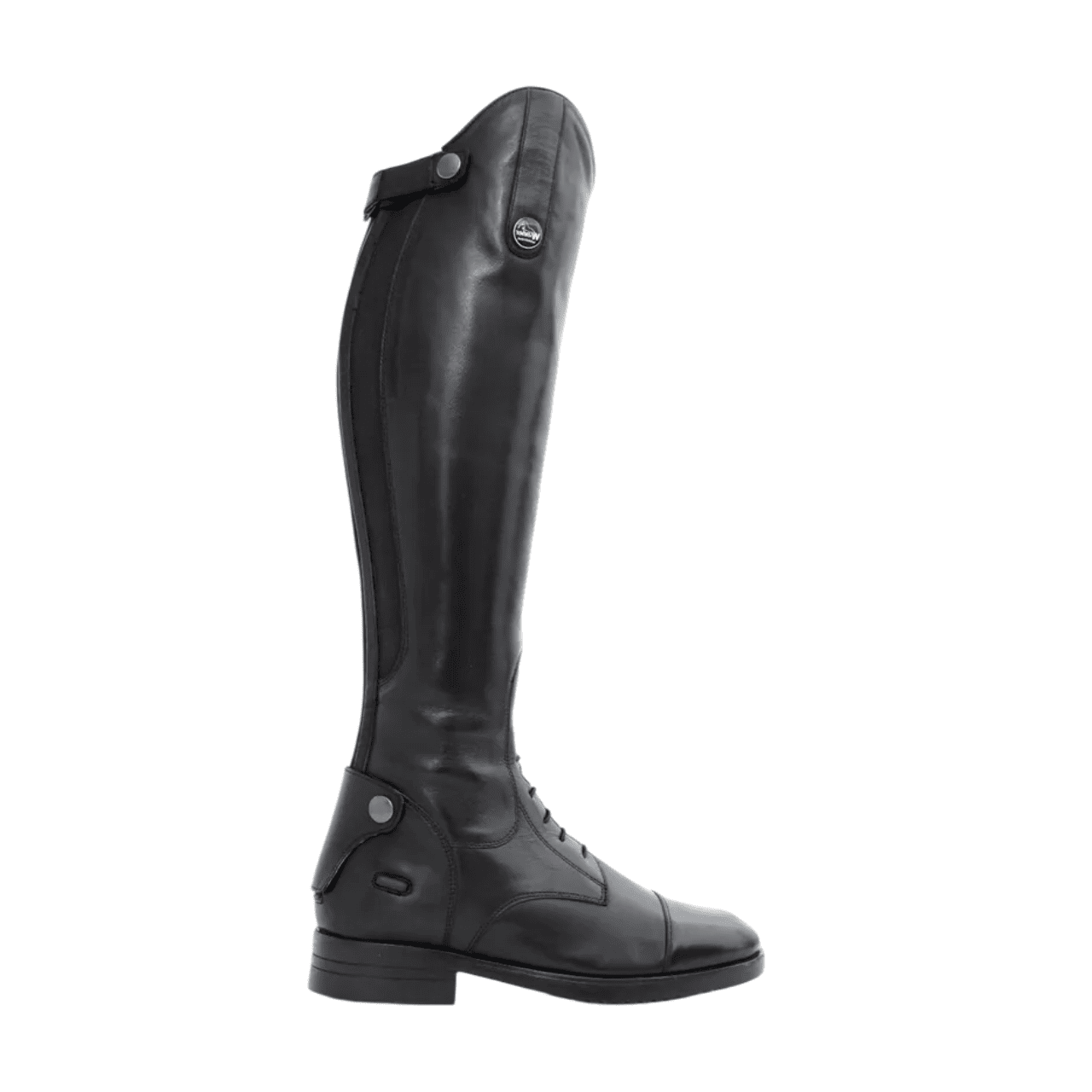 La scarpa è in pelle per offrire una naturale traspirazione e un buon livello di confort, mentre il gambale è in ecopelle elastica, che consente di non utilizzare elastici o altre soluzioni per offrire un gambale che si modella al meglio sul polpaccio dei giovani cavalieri, offrendo una vestibilità ed un'aderenza veramente unici.