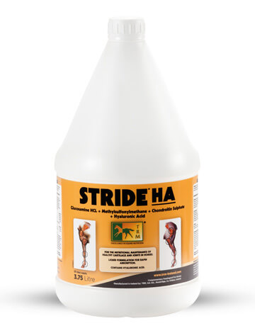 Stride Ha è uno sciroppo ad azione rapida formulato per il mantenimento nutritivo della salute delle cartilagini e delle articolazioni nei cavalli. Tutto questo con il beneficio addizionale dello Ialuronato di Sodio.
