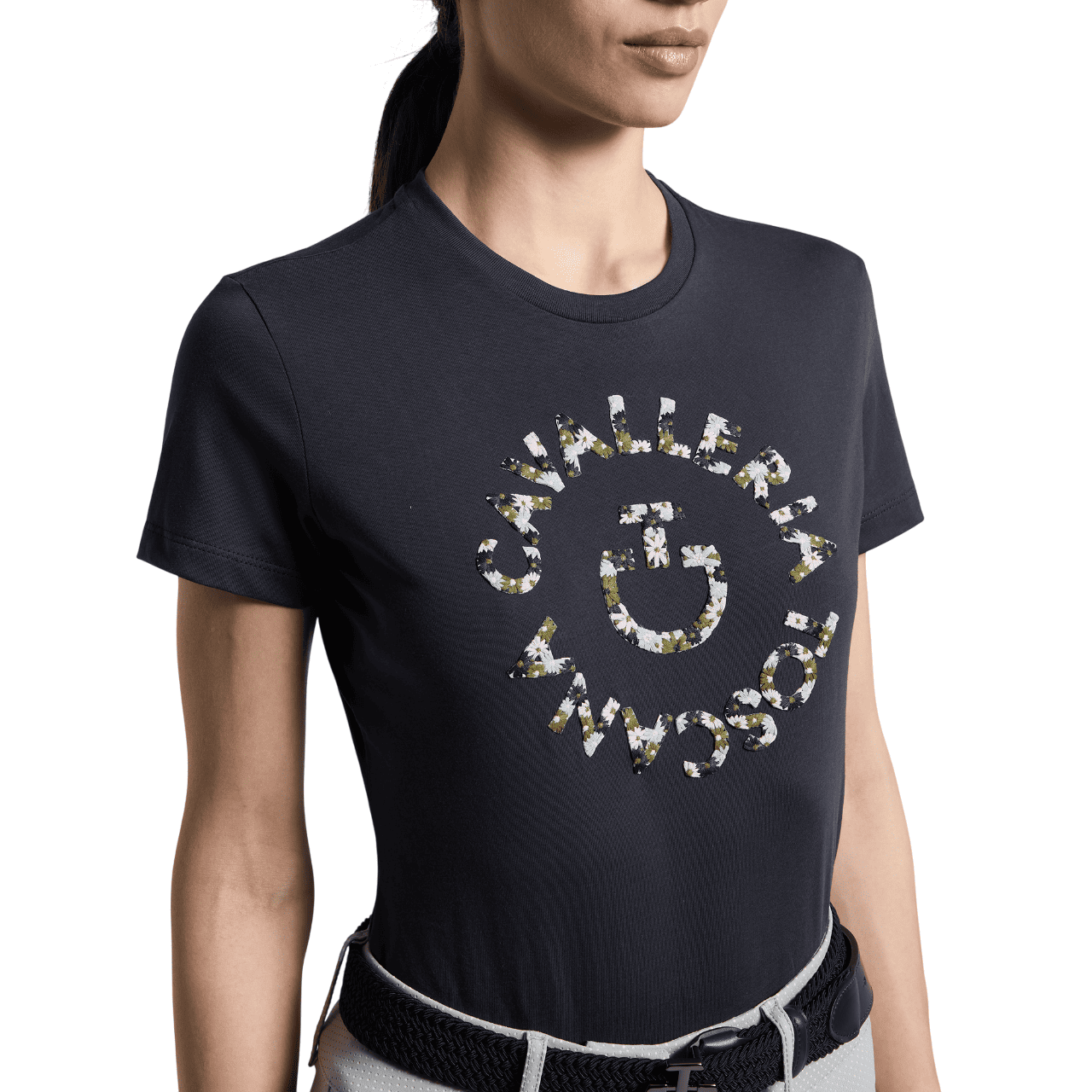 T-Shirt da donna in cotone a maniche corte con logo floreale ricamato.