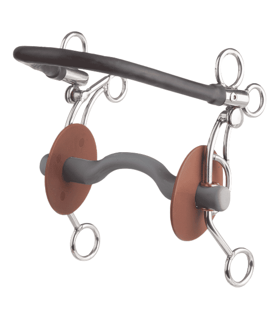 Questo pezzo boccale è ideale per i cavalli che non tollerano volentieri le imboccature convenzionali, a causa della pressione che esercitano sulla lingua, e reagiscono a queste agitando il capo.