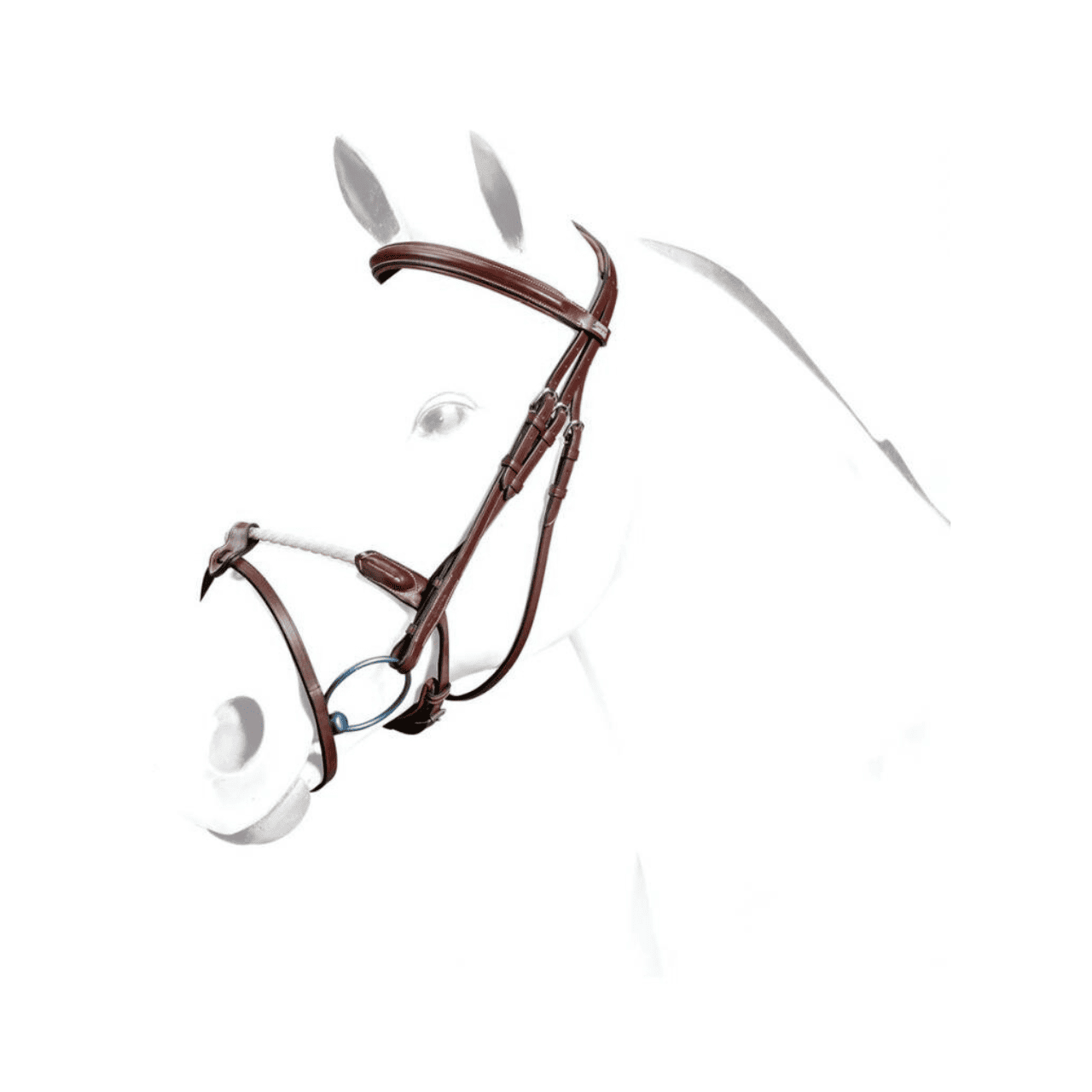 Testiera in cuoio Equipe con sopraccapo anatomico “NO STRESS” , frontalino bombato con capezzina irlandese in cuoio RAW.