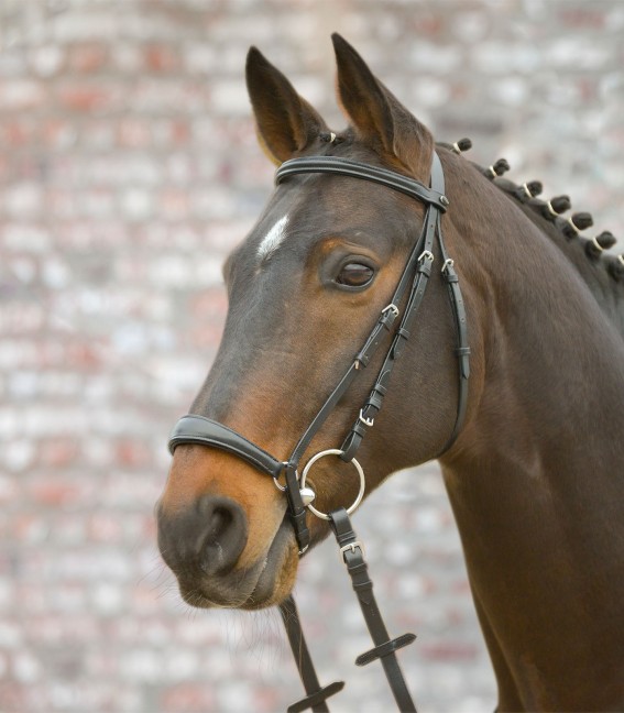 Testiera con capezzina Hannoverana realizzata in cuoio di ottima qualità e pregiata lavorazione.