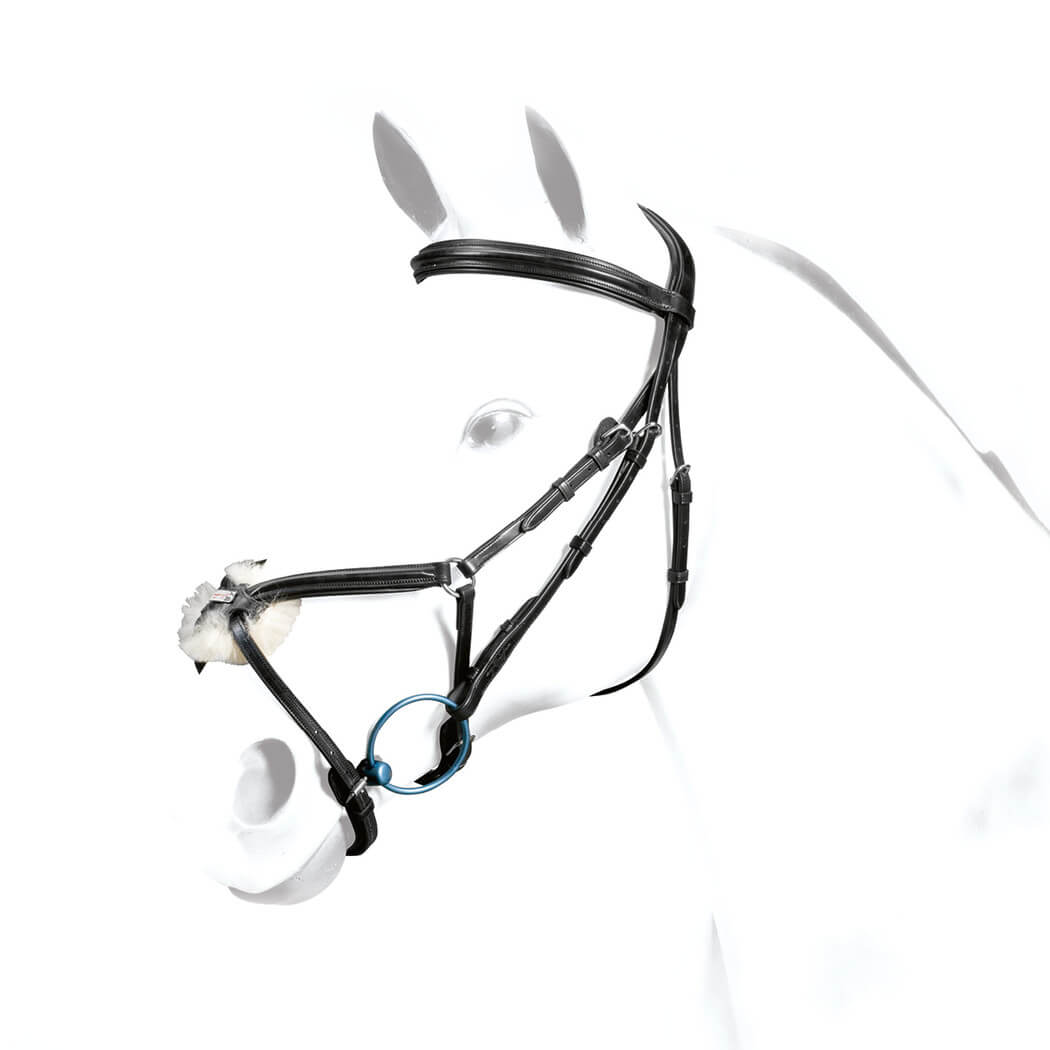 Testiera in cuoio Sedgwick con sopraccapo anatomico “No stress” e frontalino bombato con capezzina messicana a 2 regolazioni.