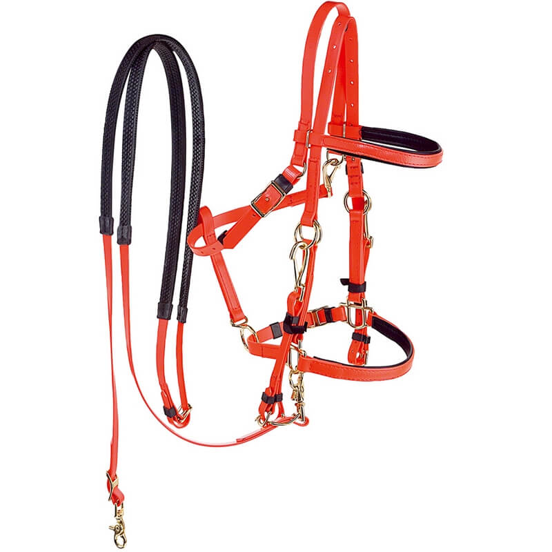 Testiera/cavezza da endurance completa di redini realizzate in PVC.