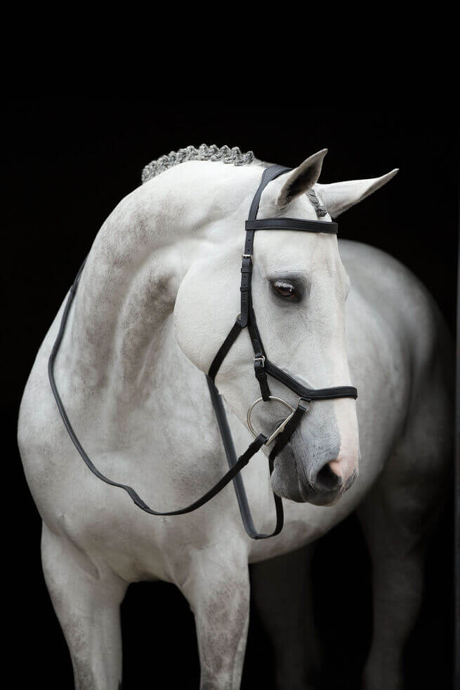 • Briglia unica progettata per adattarsi comodamente alla forma del cranio del cavallo