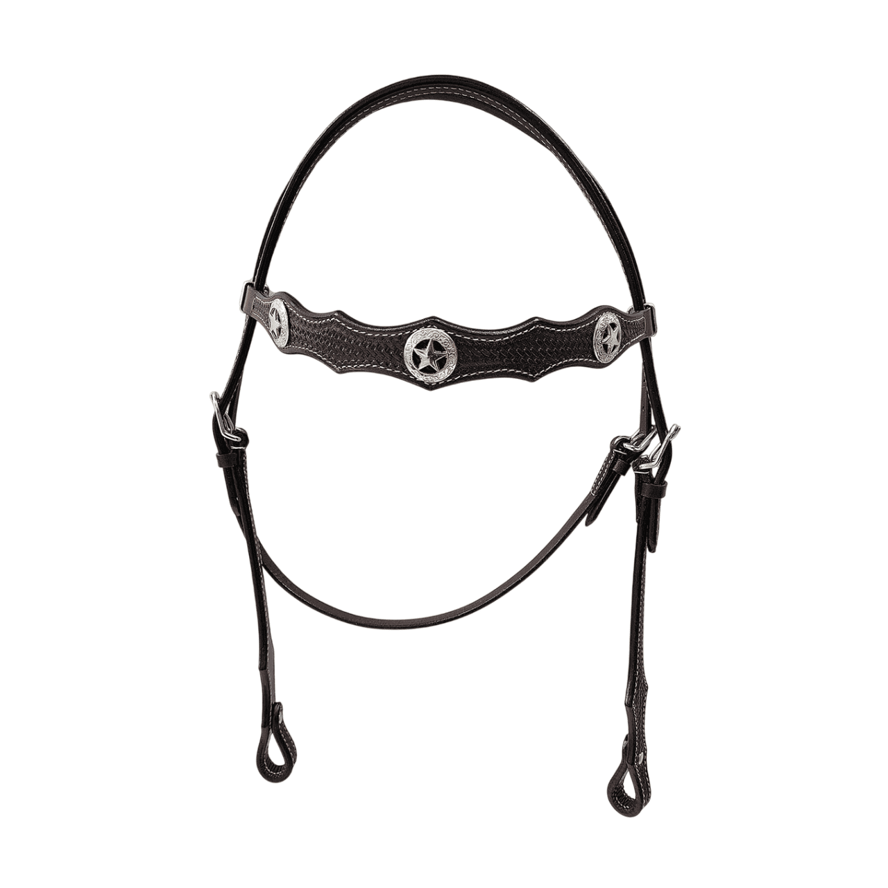 Testiera con concho a stella Triple S con fibbie in acciaio inox. Pettorale abbinato codice S45828.