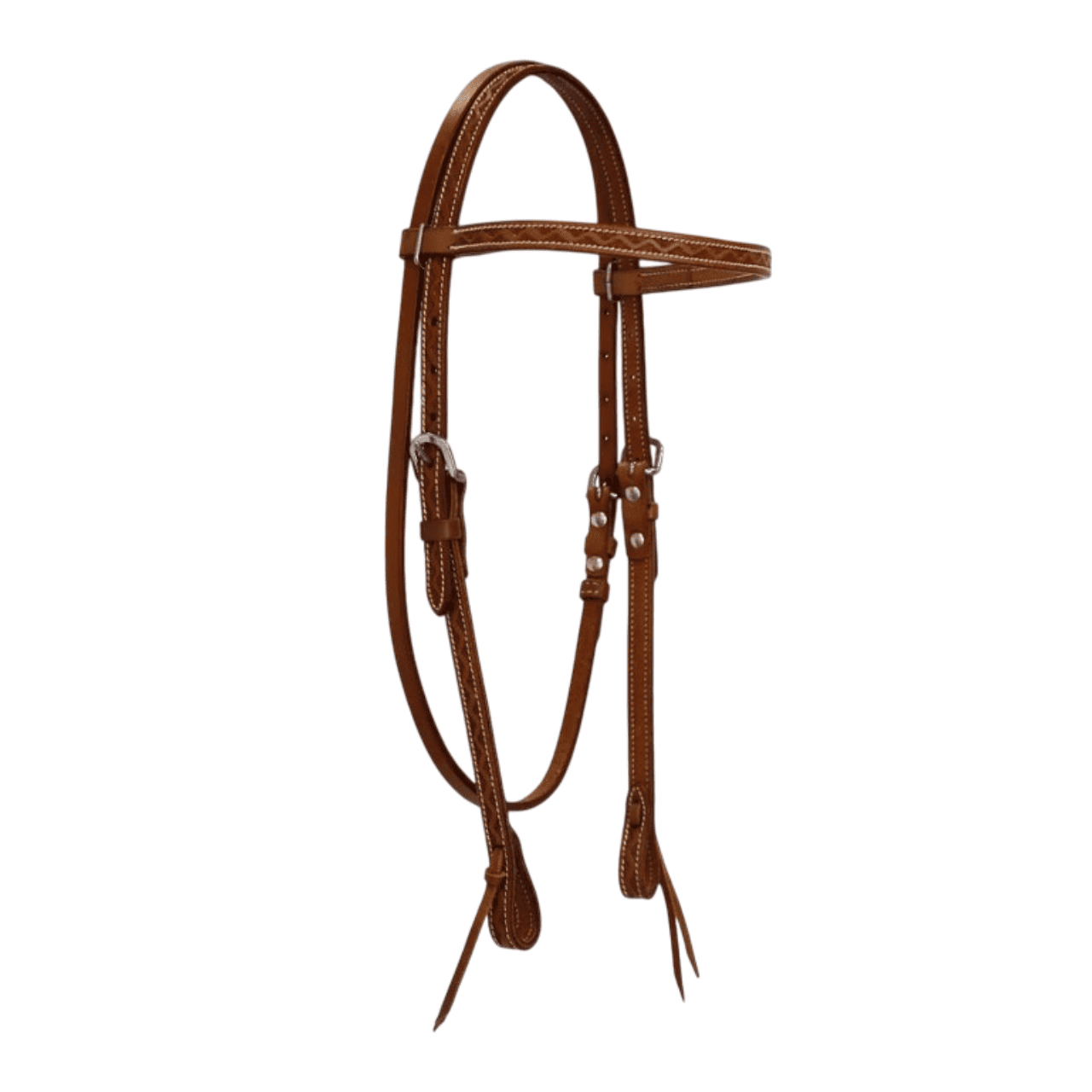 Testiera western in cuoio realizzata con decorazione zigzag e resistenti fibbie in acciaio inox.