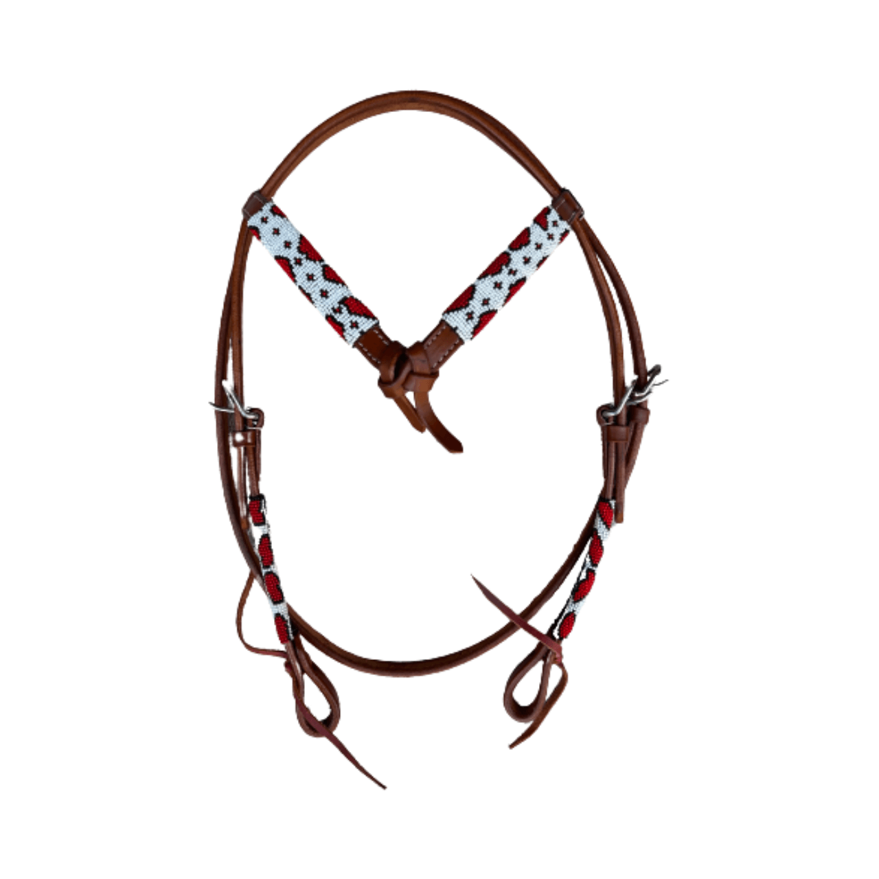 Testiera western intrecciata in cuoio con perline disponibile in taglia unica (cavallo).