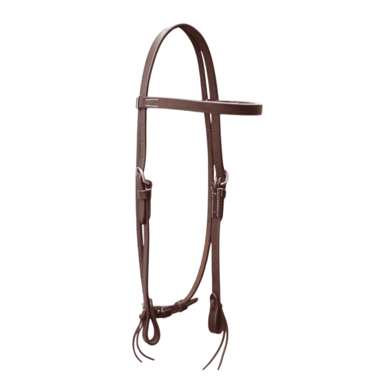 Testiera western Triple S in cuoio americano grasso, fibbie in acciaio inox e chiusure con lacci.