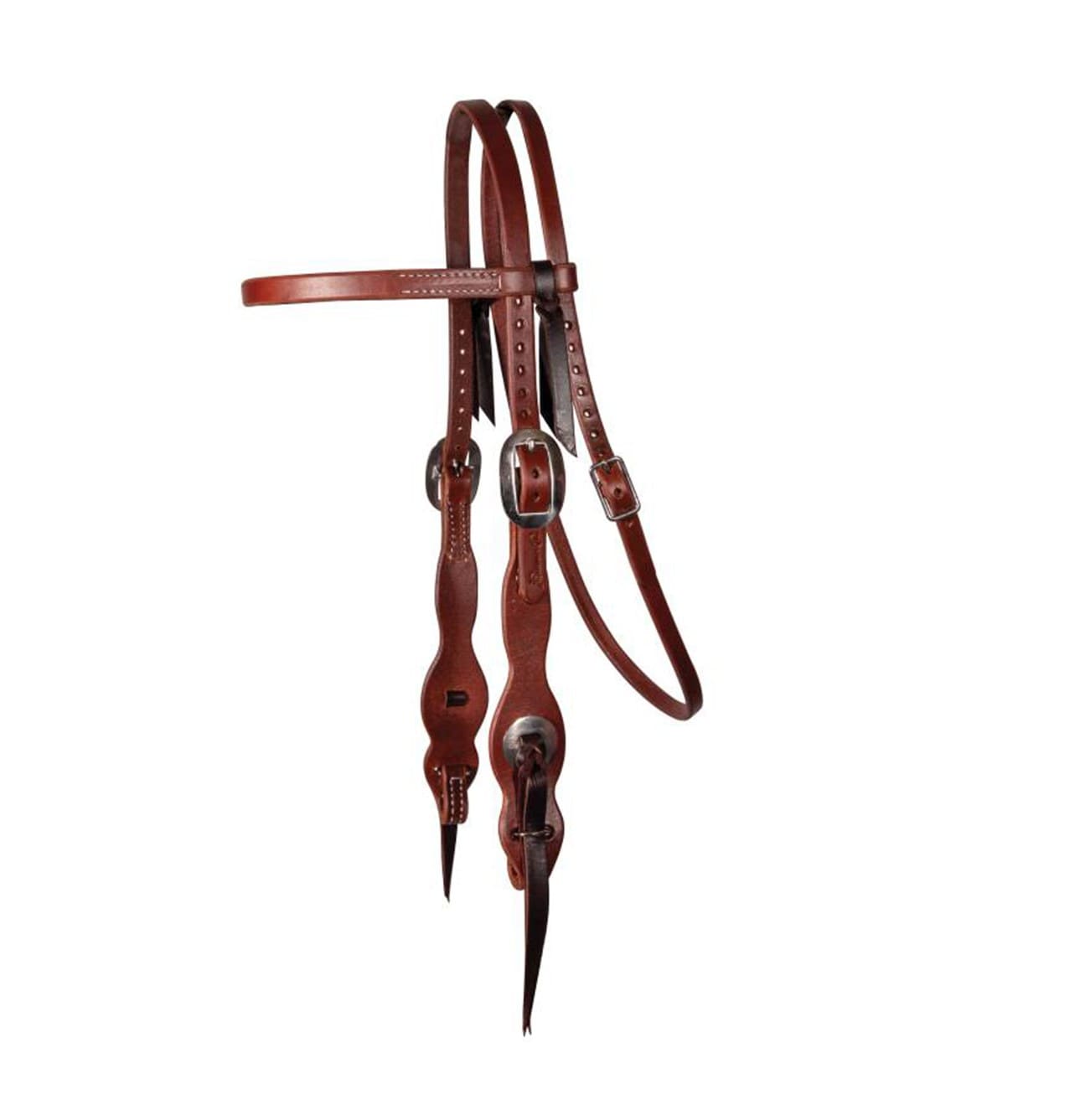 La testiera western Tassel Easy Change è realizzata in cuoio pesante per finimenti in olio e presenta una guancia smerlata da 5/8" con doppia regolazione della fibbia e ferramenta in acciaio inossidabile.