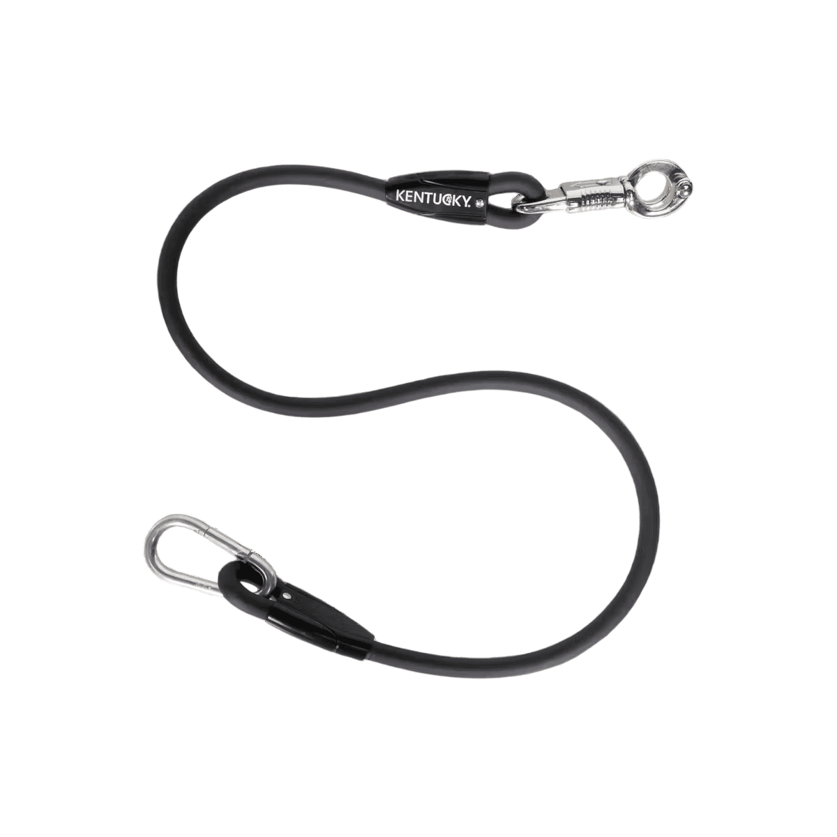 Tirante in silicone di Kentucky con doppio moschettone per legare il cavallo ai due venti. Disponibili in 3 varianti di colore nella misura 90 cm.