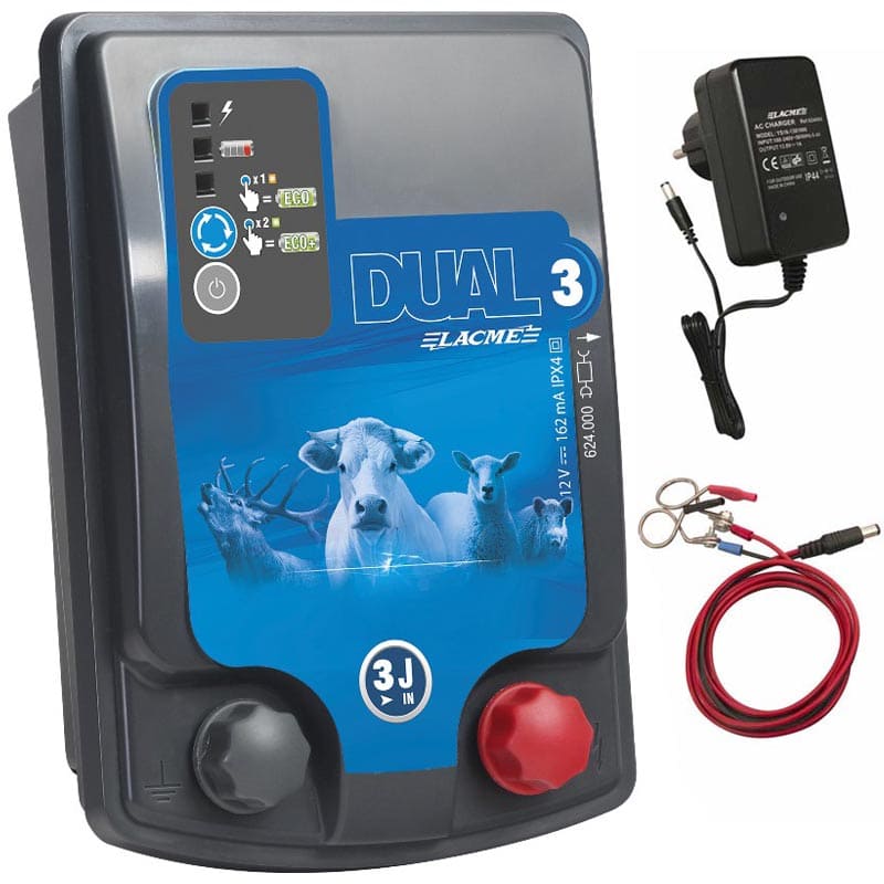 Elettrificatore Lacme D3 a corrente e batteria 12V, emissione 2 Joule. Elettrificatore ibrido a doppia alimentazione, funziona sia a corrente 220V, che a batteria 12V (non inclusa).