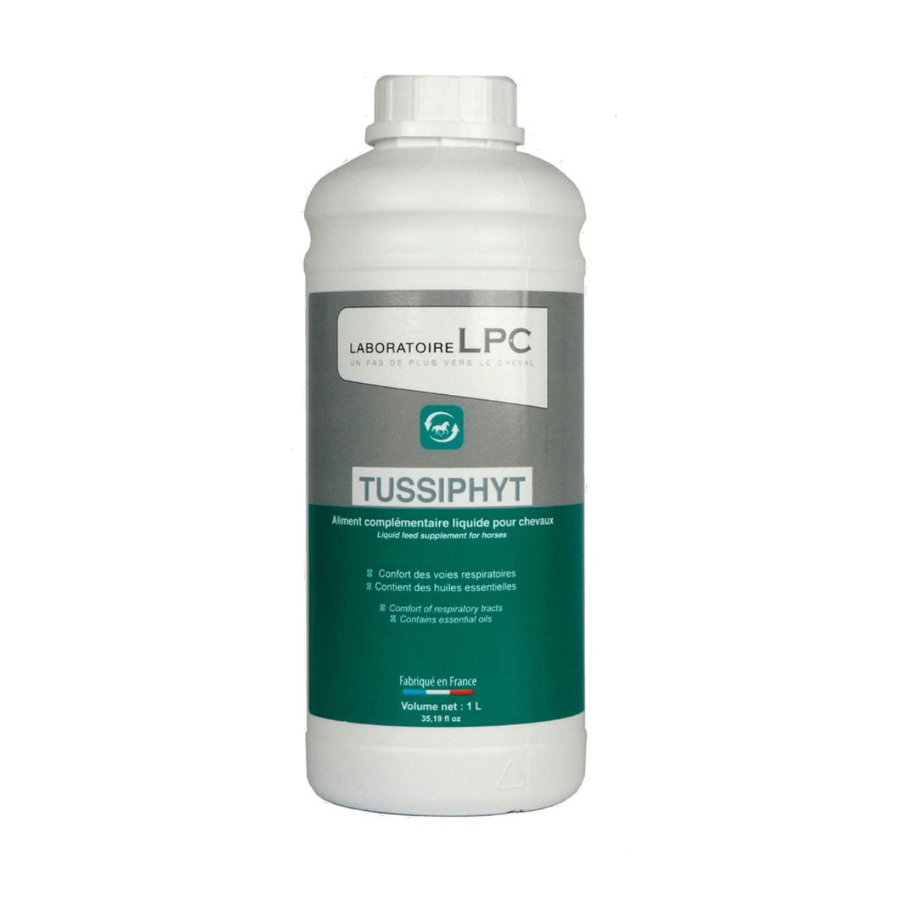Lpc Tussiphyt è una miscela di sostanze aromatiche ed olii essenziali come Origano, Eucalito, Pino e Rosmarino. La sua composizione è Sorbitolo, Cloruro di Magnesio, acqua. Viene somministrato direttamente nella bocca del cavallo usando una siringa senza ago o sulla razione del mangime.