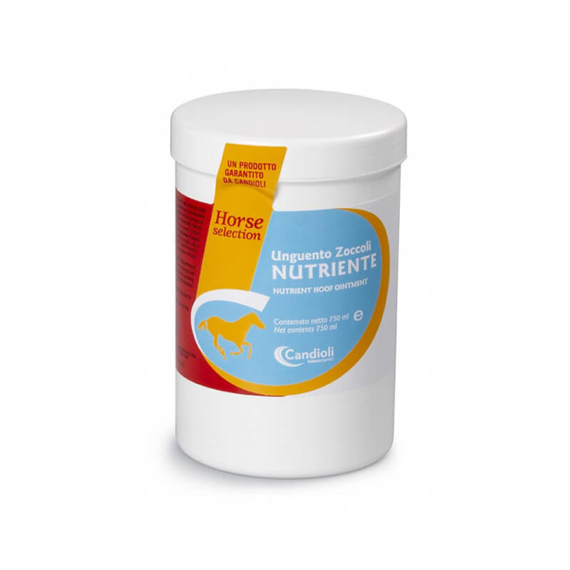 L’unguento per zoccoli nutriente è un prodotto di qualità superiore, specifico per il trattamento degli zoccoli dei cavalli atleti. La sua formula arricchita con vitamine A, D, F e Squalano rende lo zoccolo morbido ed elastico, garantendone il mantenimento nelle migliori condizioni fisiologiche. L’aggiunta degli olii essenziali di Pino e di Timo conferisce all’unguento attività stimolante ed antisettica, favorendo condizioni igieniche ottimali contro i microrganismi nocivi. Tale proprietà viene ulteriormente rinforzata dall’estratto oleoso di placenta, sostanza funzionale nota per le sue proprietà di attivatore dei processi difensivi.